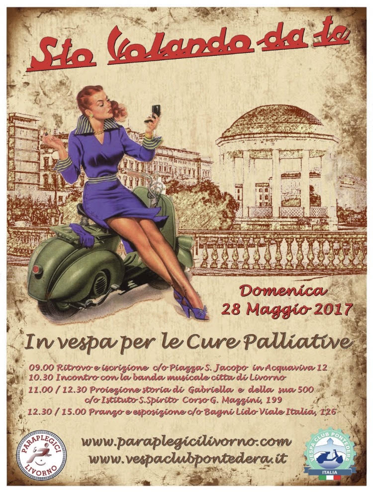 Vi apsettiamo quindi domenica 28 maggio a partire dalle ore 9,30 per scattare selfie con le migliori vespe storiche del Vespa Club Pontedera per “mettere le ali” alla vespa per il personale delle Cure palliative .