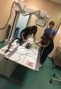 Gli studenti hanno quindi svolto la formazione operando, a rotazione, su diverse tipologie di apparecchiature diagnostiche: hanno effettuato taratura di tubi radiologici, misure dei coefficienti di attenuazione della radiazione di materiali diversi (dal cartongesso, al plexiglass e ai camici anti-X), controllo di qualità di TAC, misure di distribuzione di campo magnetico in risonanza magnetica.