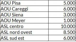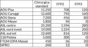 Di seguito la distribuzione, struttura per struttura, delle mascherine e delle protezioni facciali.