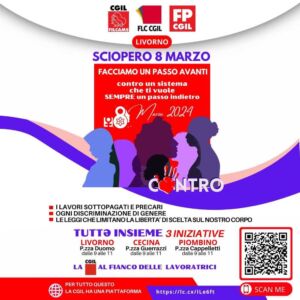 Per venerdì 8 marzo Filcams-Cgil, Flc-Cgil e Fp-Cgil indicono uno sciopero per l’intera giornata lavorativa e presìdi a Livorno, Cecina e Piombino contro le discriminazioni di genere, leggi che limitano la libertà di scelta sul nostro corpo e contro lavori sottopagati e precari.