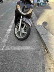 In una di queste immagini, si nota uno scivolo del marciapiede che permette di accedere alla strada. Un tempo, le moto e gli scooter parcheggiavano con la ruota anteriore rivolta verso il marciapiede lasciando libero lo scivolo per chi ne avesse bisogno.