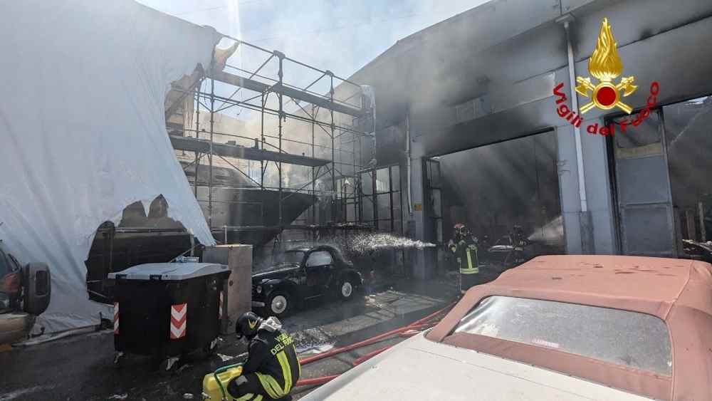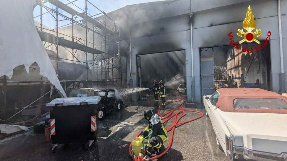 Stagno (Collesalvetti, Livorno) 5 luglio 2024 – A fuoco officina a Stagno, auto distrutte e barca seriamente danneggiata. Una persona intossicata