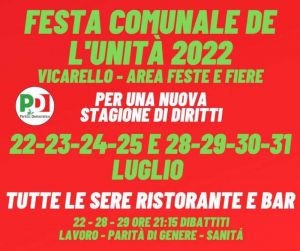 Dopo tre anni di interruzione della nostra Festa de l’Unità a causa della pandemia, anche se il futuro continua ad essere incerto, finalmente si riparte con una FESTA COMUNALE ancora