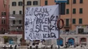 A seguito della morte per di un 26 enne tunisino, morto annegato nel fosso tra piazza della Repubblica e la Fortezza Nuova mentre di notte provava a sfuggire alle forze dell’ordine;  alcune persone hanno apposto sopra un cartellone pubblicitario un telo con delle scritte di protesta terminate con la sigla Acab