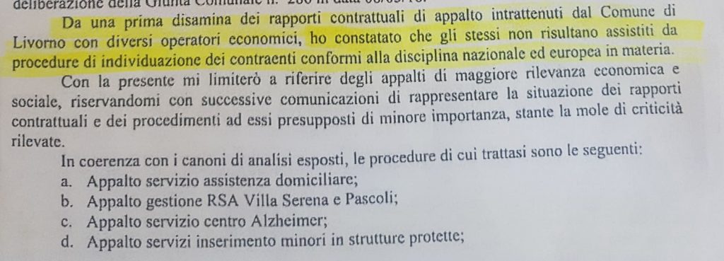 La segnalazione del consigliere Caruso sulla base di un documento interno al Comune