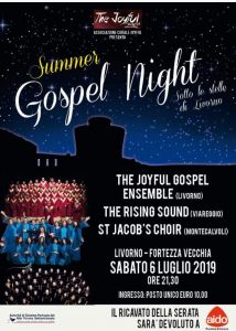 Livorno – Sarà una serata speciale, quella che gli appassionati di musica gospel avranno l’opportunità di vivere il 6 luglio alle ore 21,30 a Livorno, nella splendida cornice della Fortezza Vecchia, una serata ricca di suggestioni musicali, di ritmo e di energia, che consentirà di apprezzare tre delle “ensemble” considerate tra le più calde ed appassionate, non solo in Toscana, ma nell’intero panorama della “gospel music” italiana.