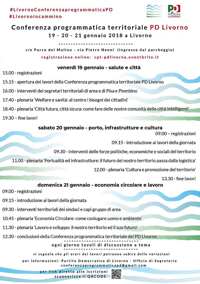 Livorno – Grazie al lavoro di tanti volontari, che fin dallo scorso autunno hanno quotidianamente ed incessantemente lavorato all’organizzazione dell’evento, il 19 – 20 – 21 gennaio prossimi si svolgerà presso il Parco del Mulino di Livorno la Conferenza Programmatica del PD territoriale di Livorno.