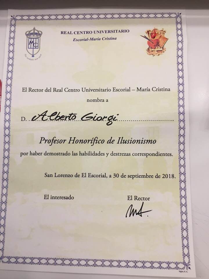 Oltre al premio Oracolo d’Oro il livornese Giorgi è stato nominato professore onorario di illusionismo presso Real Centro Universitario Escorial – Maria Cristina di Madrid