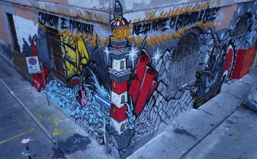“Il murales ricorda, attraverso un galeone e un faro, le radici marinare della città di Livorno.