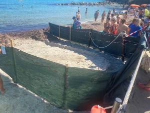all’immediata messa in sicurezza dell’area circostante il nido, delimitandola con pali in legno e rete ombreggiante per impedire l’ingresso dei bagnanti.