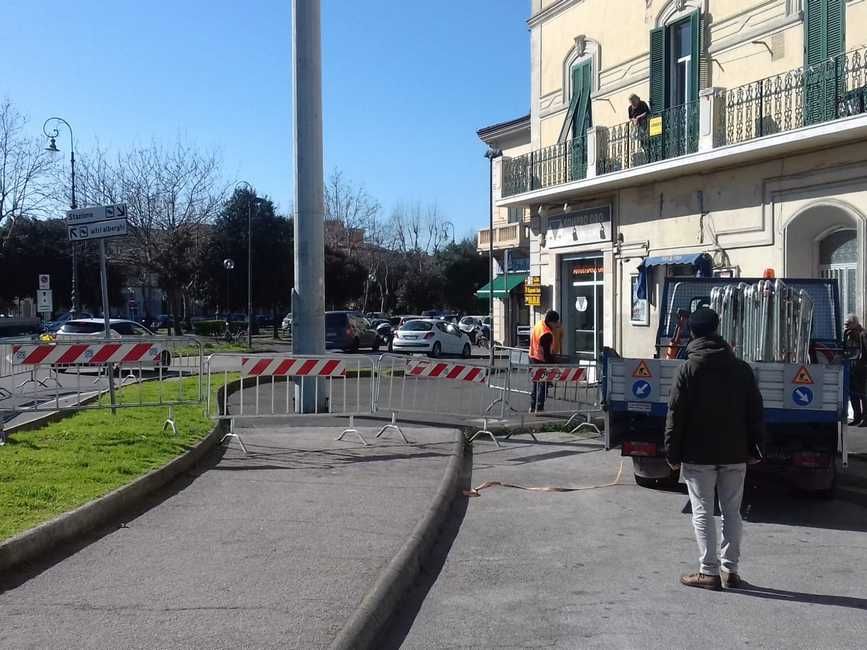 Livorno – Alogena pericolante, lampione transennato in piazza Dante