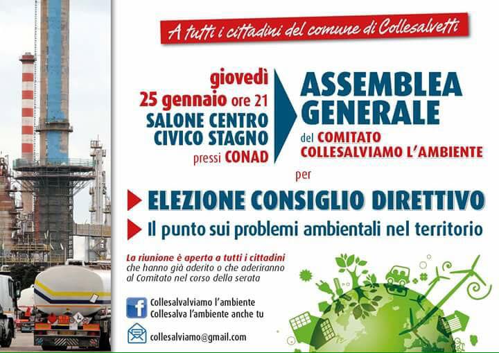 Il comitato Collesalviamo L’ambiente, organizza una assemblea generale aperta a tutti gli interessati (che abbiano già aderito o aderiranno al comitato) per eleggere il consiglio direttivo e fare il punto sui problemi ambientali presenti nel territorio .