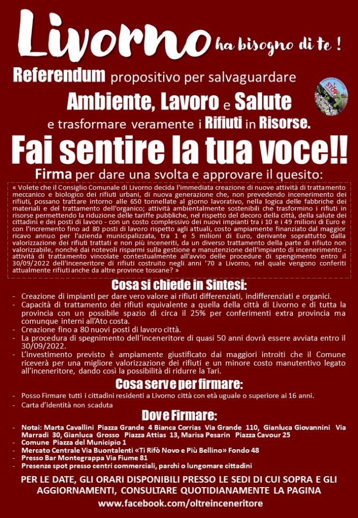 Il comitato invita tutte le associazioni favorevoli alla necessaria transizione ecologica e industriale della nostra città nella logica di “Rifiuti Zero” e delle “Fabbriche di Materiali” ad aiutare nella raccolta delle firme