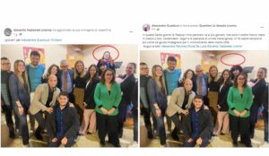 Sul web però è apparsa la stessa foto in due versioni differenti; una con Marcella Amadio e l’altra senza. Sui social la cosa non è passata inosservata e in campagna elettorale si è scatenata la polemica politica.