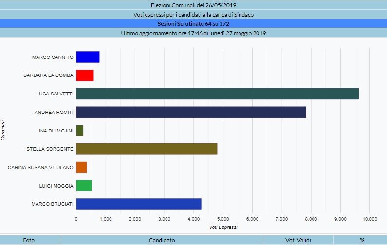 Amministrative scrutinati un terzo dei seggi Salvetti ancora avanti a Romiti
