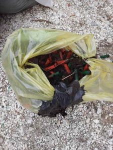 La “Novità del giorno”, sacchetti riempiti con le cartucce lasciate a terra da bravi cacciatori. Anche alcuni cacciatori inquinano
