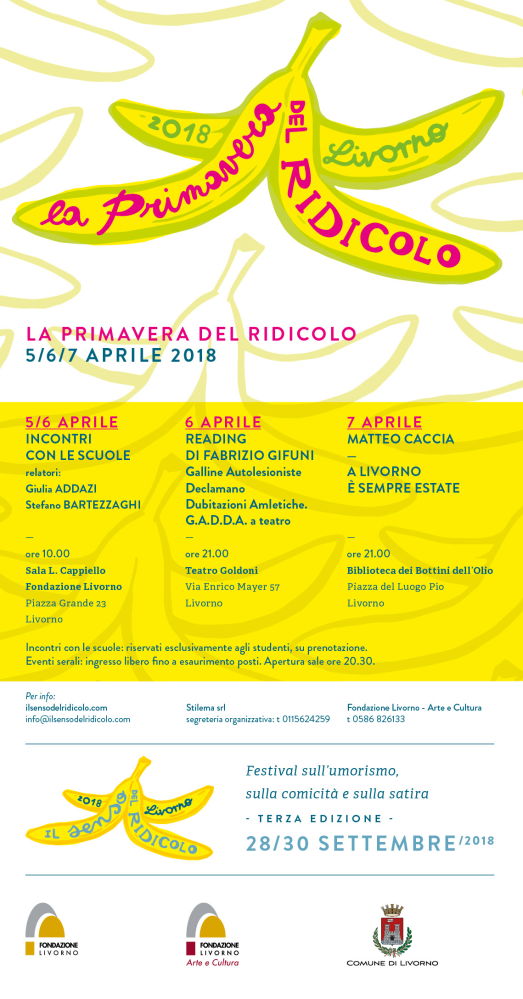 Giulia Addazi e Stefano Bartezzaghi incontrano le scuole. Delegazioni di scuole elementari, medie inferiori e superiori, provenienti da tutta la provincia, parteciperanno a due laboratori sui temi del comico e del gioco, tenuti da Giulia Addazi e Stefano Bartezzaghi. Gli studenti e i docenti presenti potranno poi ripetere l’esperienza nelle loro scuole e così materiali e argomenti cari al Festival avranno l’opportunità di essere disseminati su tutto il territorio.