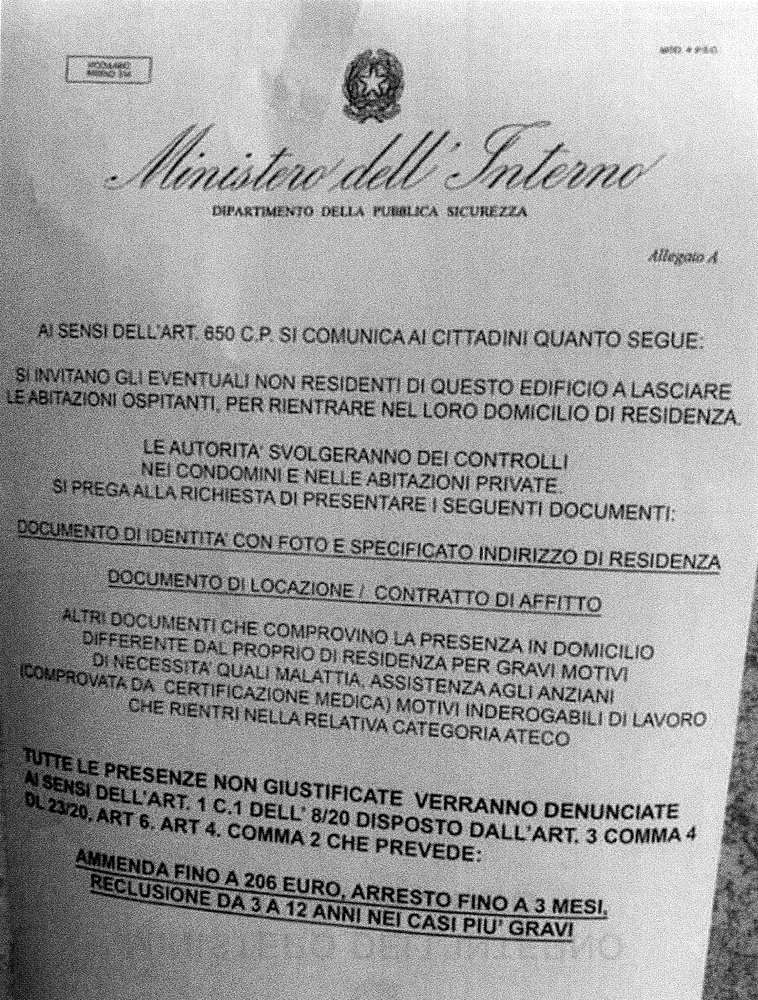 Nell’odierno pomeriggio questa centrale operativa ha già ricevuto 5 segnalazioni afferenti l’affissione ai portoni di accesso ad alcuni condomini del centro cittadino di avvisi in cui si anticipano controlli all’interno delle abitazioni privati con la richiesta di documenti per accertare la residenza di chi non ne avesse titolo, con l’evidente scopo di entrare negli appartamenti per scopi non leciti.