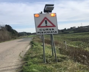 Attiva la segnaletica lampeggiante prima della curva pericolosa sulla Via delle Sorgenti