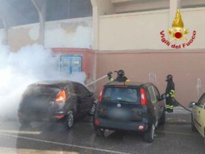 Auto a fuoco allo stadio, pronto intervento dei Vigili del fuoco (Foto)