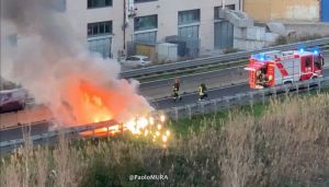 Livorno 17 gennaio 2021 – Auto a fuoco sulla Variante Aurelia.