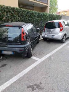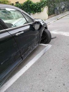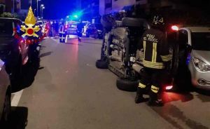 Auto si ribalta nella notte in via Goito. Le auto distrutte dei residenti (Foto)