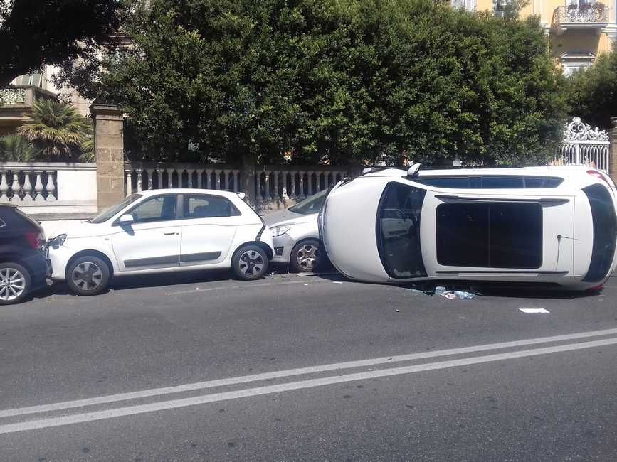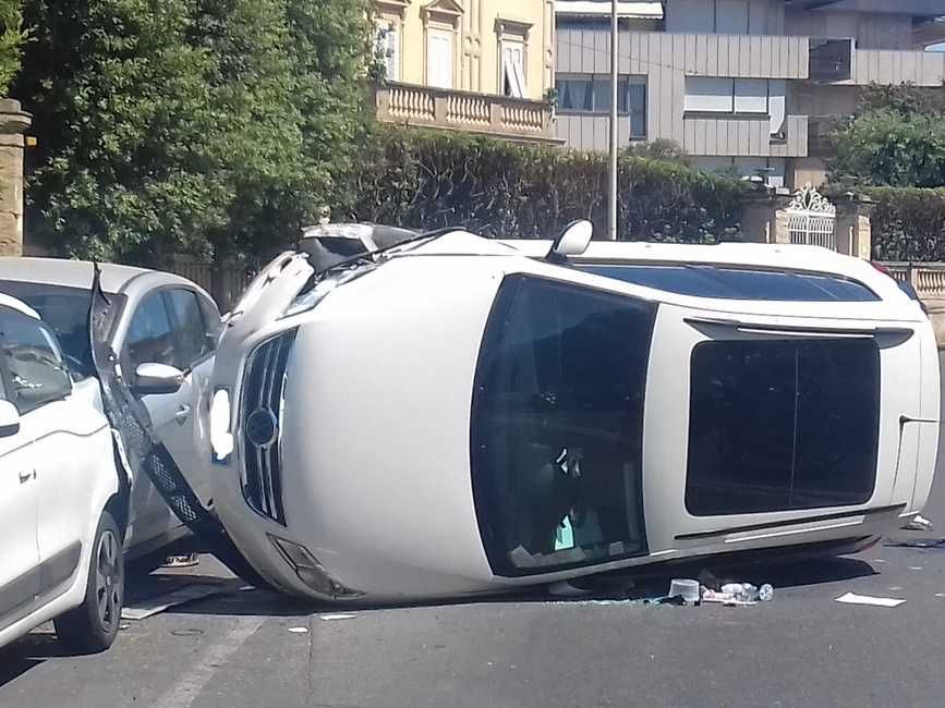 L’auto sembra che si sia ribaltata dopo aver urtato una prima macchina in sosta.