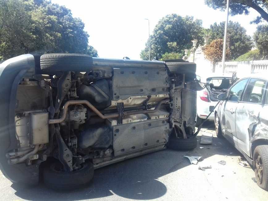 Auto si ribalta su un fianco alla Rotonda d’Ardenza