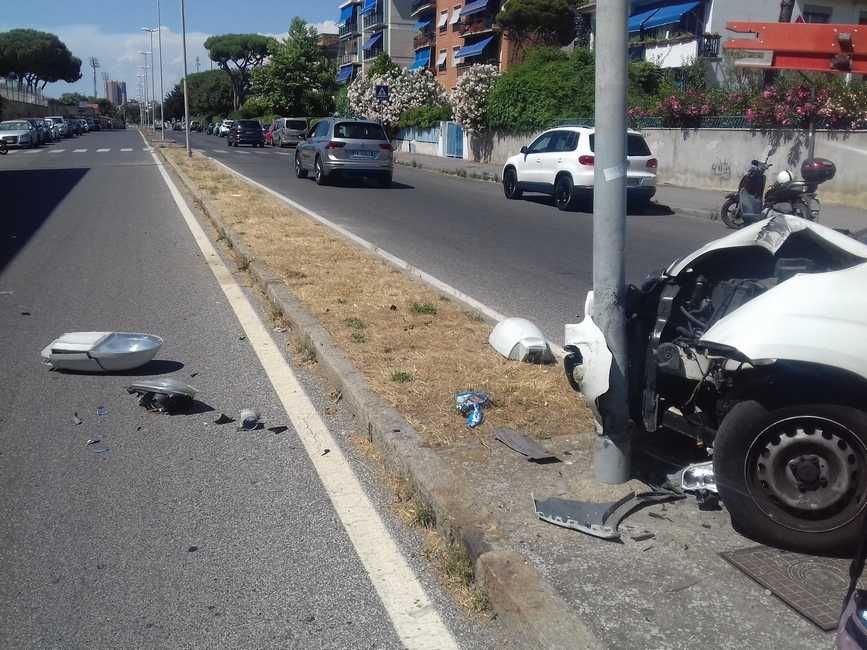 Livorno – Nel pomeriggio di oggi 03 luglio 2019 intorno alle ore 15,30,  un’auto a causa di un’incidente stradale è finita contro un palo dell’illuminazione pubblica in via dei Pelaghi.