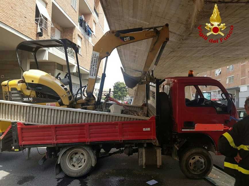 Il mezzo, nel transitare sotto il cavalcavia, ha urtato con il braccio della pala meccanica l’impalcato.
