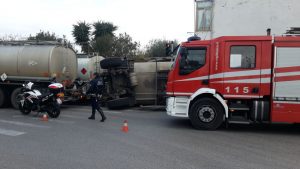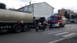 Autocisterna si ribalta in via Firenze. Foto