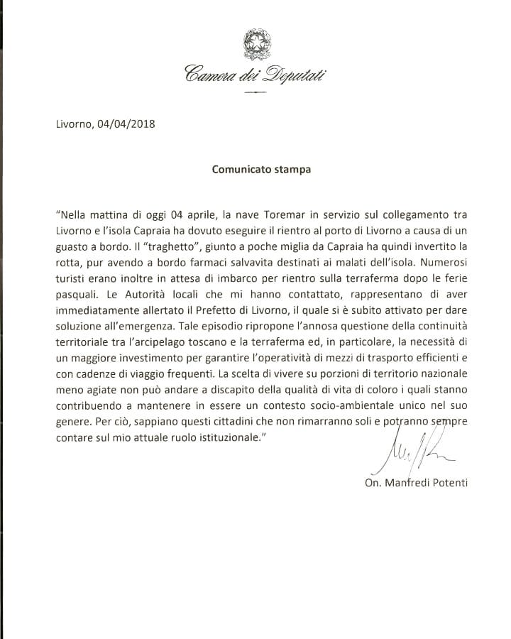 La questione dei farmaci era stata sollevata anche dall’On. Manfredi Potenti, che ha preso contatto col Prefetto nella mattinata di ieri
