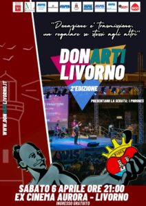 Dopo il successo della prima edizione, “DonArti Livorno 2” torna il 6 Aprile presso l’Ex Cinema Aurora e torna per dare spazio alle opere di quanti hanno sentito l’esigenza di veicolare un messaggio aperto al concetto di “dono” a 360gradi che resterà nel tempo e continuerà a far riflettere e/o a sensibilizzare attraverso i gadget e la diffusione nei circuiti social e sociali delle associazioni coinvolte.