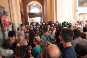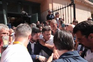 Bagno di folla per Giuseppe Conte al sua arrivo a Livorno (Foto e video)