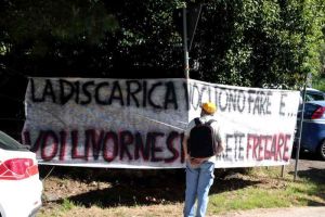 La manifestazione è stata indetta dal Comitato che si oppone a questo progetto folle adiacente al Parco delle Colline Livornesi in seguito a una decisione del TAR di riaprire parzialmente una parte della discarica e farla così entrare in funzione.