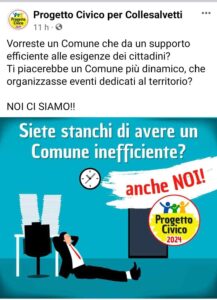 Il post “incriminato” è una foto accompagnata dal un commento : Vorreste un Comune che da un supporto efficiente alle esigenze dei cittadini? Ti piacerebbe un comune più dinamico che organizzasse eventi dedicati sul territorio? Noi ci siamo.