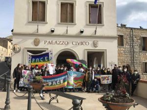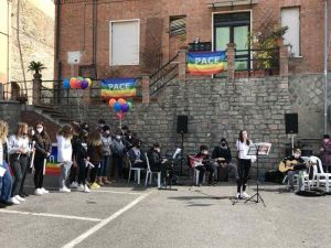 Hanno preso parte all’iniziativa anche la Dirigente, Caterina Startari, mostrando tutta la sua soddisfazione per l’impegno e la partecipazione dei ragazzi e delle ragazze ad un momento importante come questo, il vice sindaco Enzo Mobilia, che ha esortato tutti a lanciare un grido liberatorio di ‘pace’ e la consigliera comunale Manuela Pacchini. Nella piazza erano, inoltre, presenti le associazioni di volontariato La Rocca e la Pubblica assistenza insieme con le forze dell’ordine del territorio, oltre ad alcuni cittadini bibbonesi, ma anche ucraini già arrivati nel nostro comune: giovani donne con i loro bambini che speriamo si siano sentiti accolti dai loro coetanei. La manifestazione è poi continuata con una marcia simbolica, colorata dai palloncini e dagli striscioni, attraverso le vie del paese.