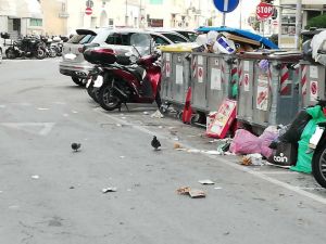 I sacchetti aperti sono cibo per i piccioni, poi sicuramente spunteranno anche i ratti a banchettare.
