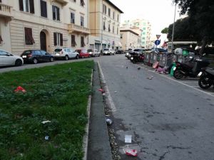 Livorno 27 dicembre 2022 – Bidoni e spazzatura in piazza Matteotti, “effetto Santo Stefano”. Le foto del lettore
