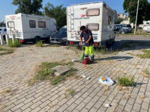 Livorno 22 agosto 2024 – Bivacchi e immondizia al parcheggio Libertà, intervengono Municipale e Aamps