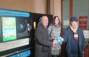 Inaugurato oggi, al Mercato delle Vettovaglie, un eco-compattatore “Mangiaplastica” destinato alla raccolta e allo smaltimento degli imballaggi (principalmente bottiglie) in PET.