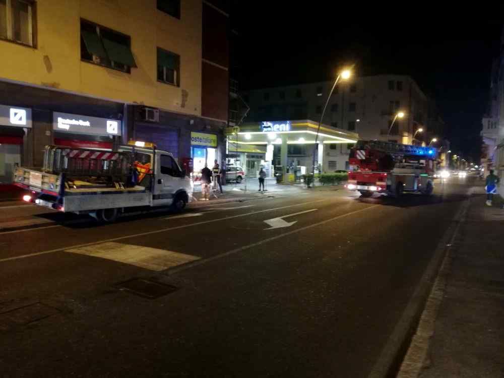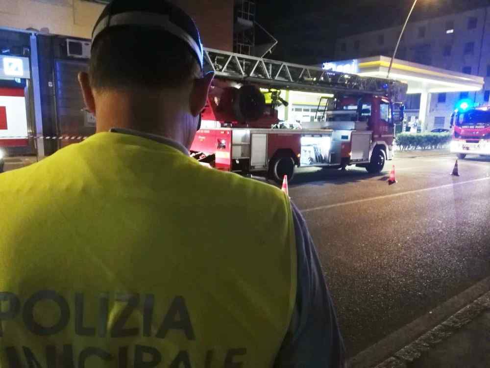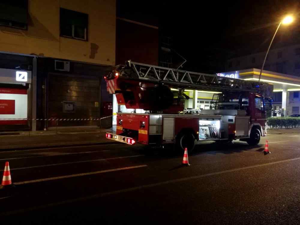 I vigili del fuoco hanno controllato le facciate del condominio dove ci sono l’ufficio postale la Deutsche Bank e altre attività commerciali. L’accurato controllo per la messa in sicurezza svolto dagli uomini dei vigili del fuoco è durato un’ora e mezzo