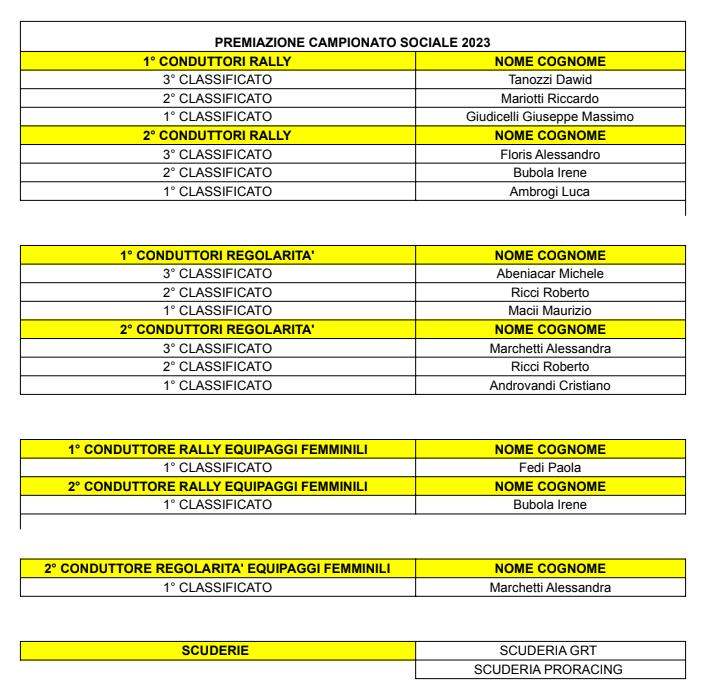 Premiazione del Campionato Sociale AC Livorno 2023. Tra i premi consegnati ben ottomila euro in buoni benzina.