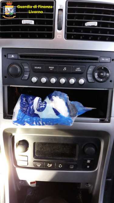 Il successivo esame della plancia del mezzo consentiva, quindi, di rinvenire, all’interno di un vano occulto nascosto dietro l’alloggiamento dell’autoradio, un involucro di cellophane contenente gr. 57 di sostanza biancastra che, sottoposta a reazione chimica con il “drop-test”, è stata identificata come cocaina ad elevato grado di purezza.