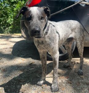 Una femmina grigio/bianco maculato. Adesso si trova al canile municipale