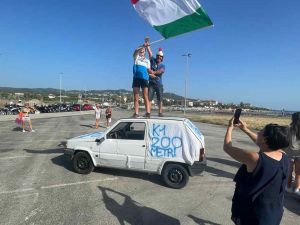 La festa è iniziata con un giro in città tra clacson e bandiere dell’Italia, con Sara a bordo di un’auto e i suoi amici in scooter. Poi si è spostata al Canoa Club Livorno, dove Sara è stata accolta da una folla entusiasta e da uno striscione con la scritta “Sara sei grande”.