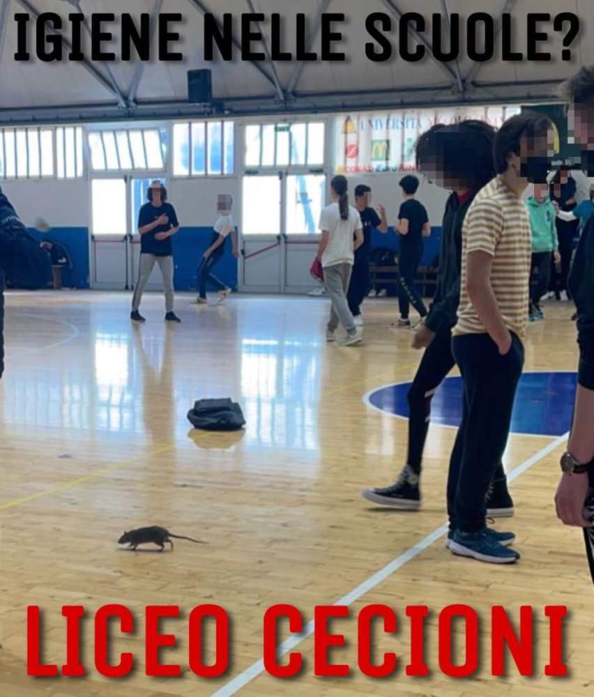 “Questa mattina gli studenti del Cecioni, che si trovavano in una palestra della struttura, hanno notato un topo correre sul parquet della sala che stava attraversando serenamente i ragazzi.