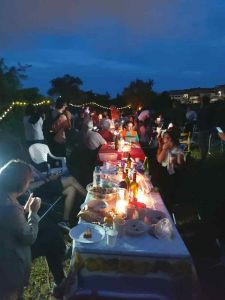 La cena si è tenuta nell’area verde di via San Marino dove dovrebbe essere costruito il cubone per dimostrare che il verde è vita ed è anche un effettivo elemento di socializzazione per il quartiere.