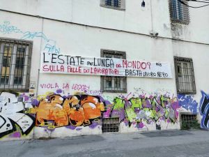 Oltre ai volantini verdi sui muri del quartiere è apparso anche uno striscione sull'”Estate più linga del mondo” a firma USB.