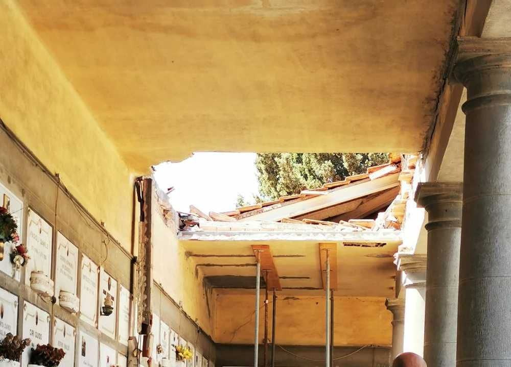 Cimitero Cecina, crolla soffito del porticato. Lippi: “Basta interventi tampone, agire con celerità”